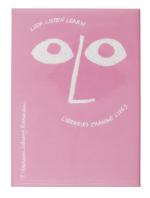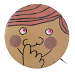 | Image description: | A pink thumbprint with an illustrated face and limbs below black text on a white background. |